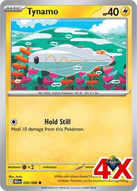 4x Tynamo Black Bolt Near Mint condition cards from the Black Bolt set. Each card is in excellent shape with sharp corners, clean surfaces, and vibrant print quality. Perfect for collectors building complete sets or players seeking high-grade copies for competitive play. Ideal for grading submissions or display in a premium collection. Secure your playset today.
